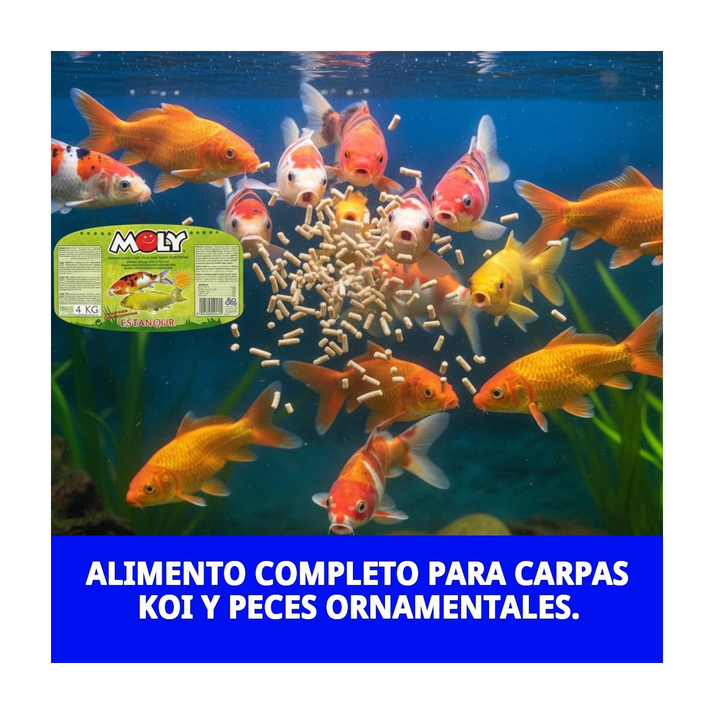 Moly Estanque Sticks 4 kg profesional es el alimento ideal para carpas koi y peces dorados. Su formato de sticks flotantes asegura que tus peces disfruten de una alimentación completa, sin hundirse. Con un balance perfecto de fibras, promueve una digestión saludable y proporciona la energía necesaria para su bienestar.