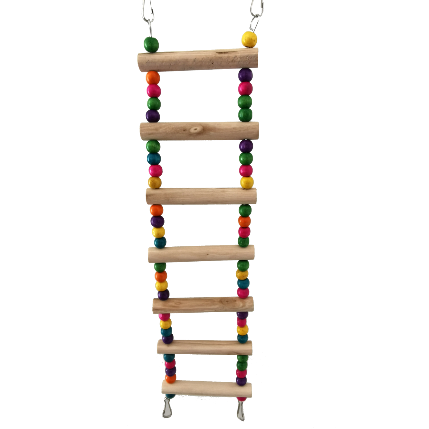 - Variedad de juguetes: Combina la escalera con otros juguetes para mantener el interés de tu ave.
