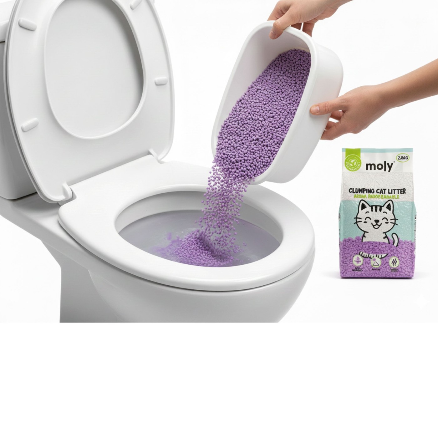 Arena vegetal de tofu 100 % ecológica y biodegradable.