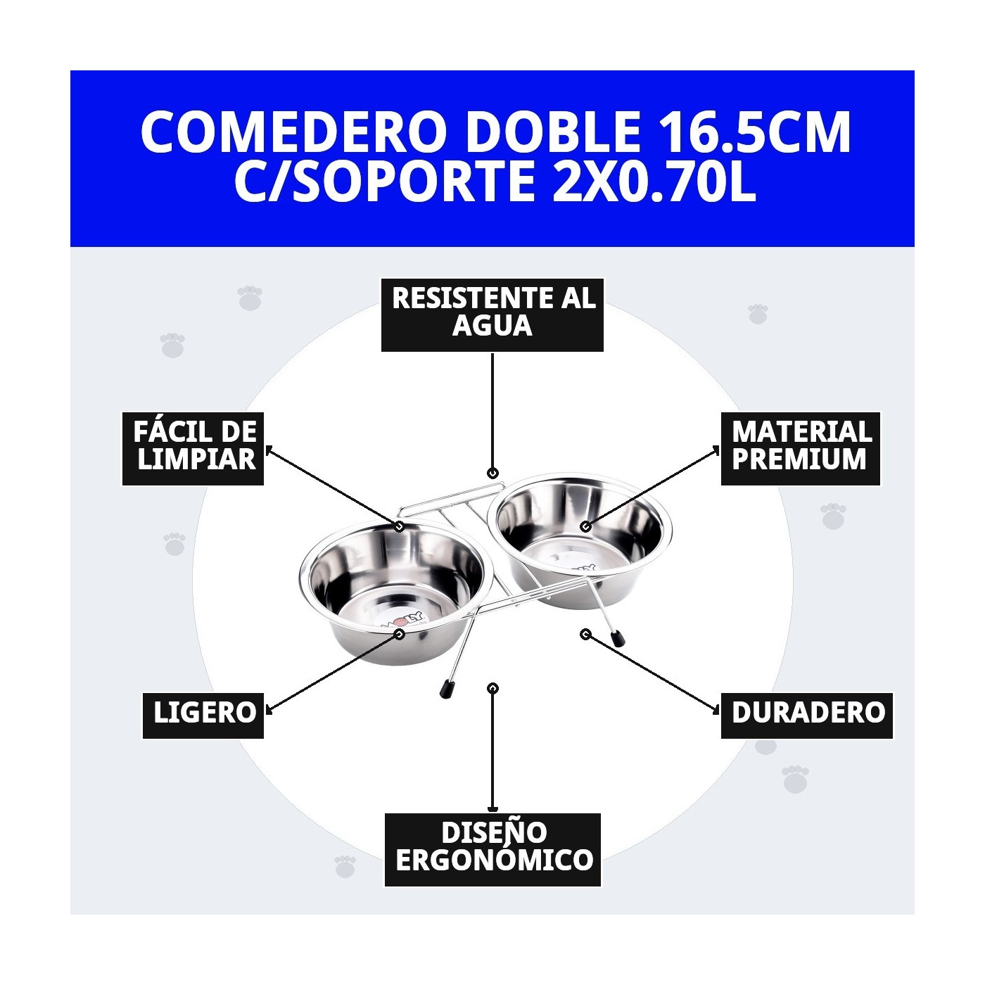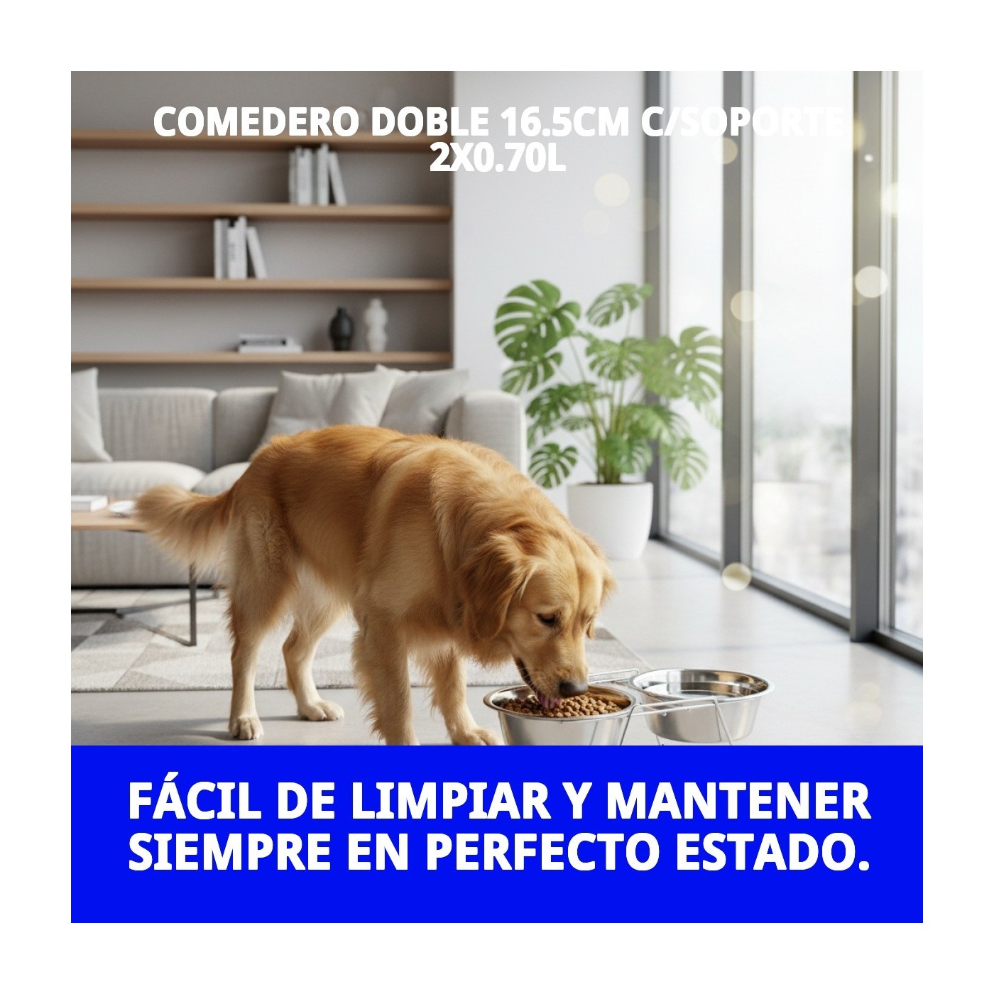 COMEDERO DOBLE 16.5CM C/SOPORTE 2X0.70L