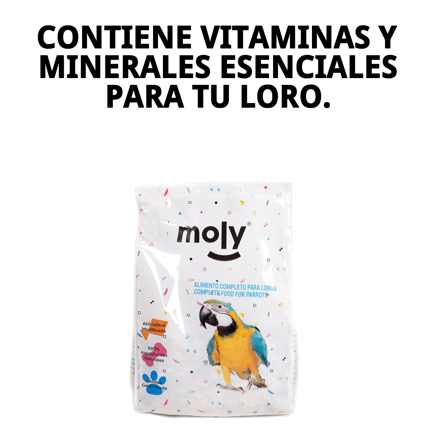 - Variedad: Aunque la mixtura loros y cotorras Moly 600 gr es excelente, no olvides complementar la dieta con frutas y verduras frescas.