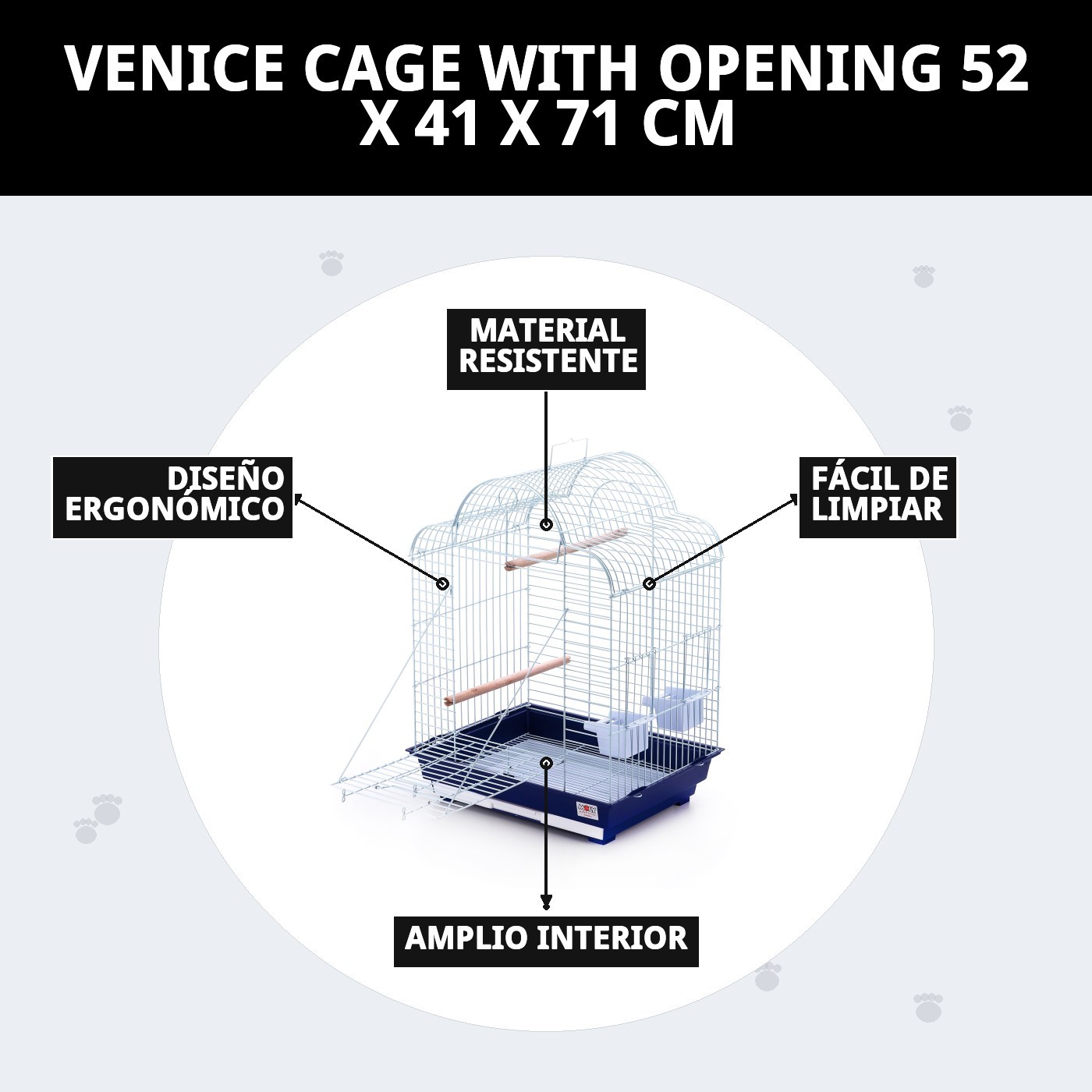 La jaula Venecia no solo es práctica, sino que también ha sido diseñada pensando en la comodidad de tu mascota. Las aberturas amplias permiten una buena ventilación, esencial para que tu compañero tenga un ambiente fresco y agradable. Además, su estructura robusta garantiza que tu peludo amigo esté seguro en todo momento. No hay nada más tranquilizador que saber que tu mascota está en un lugar seguro y cómodo.