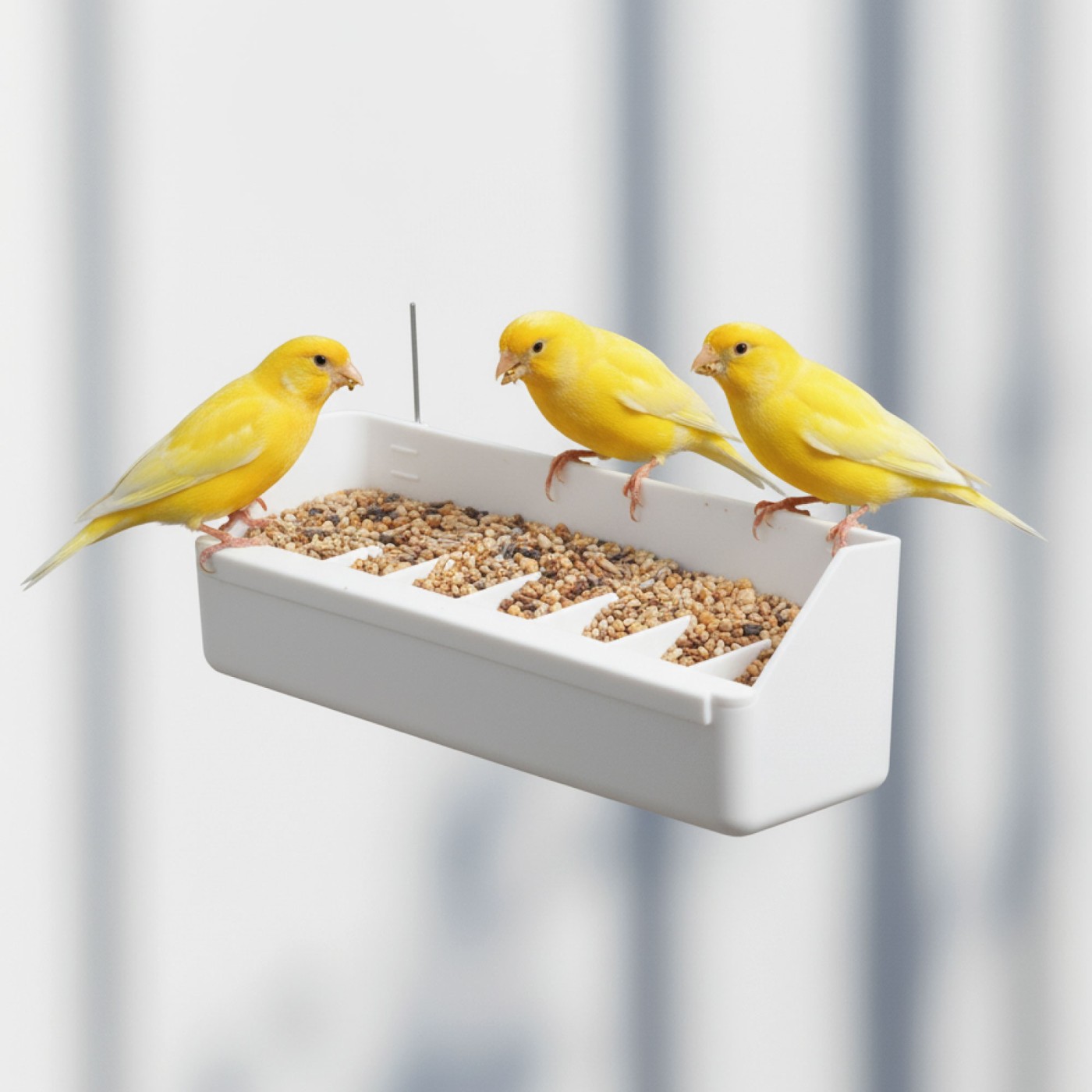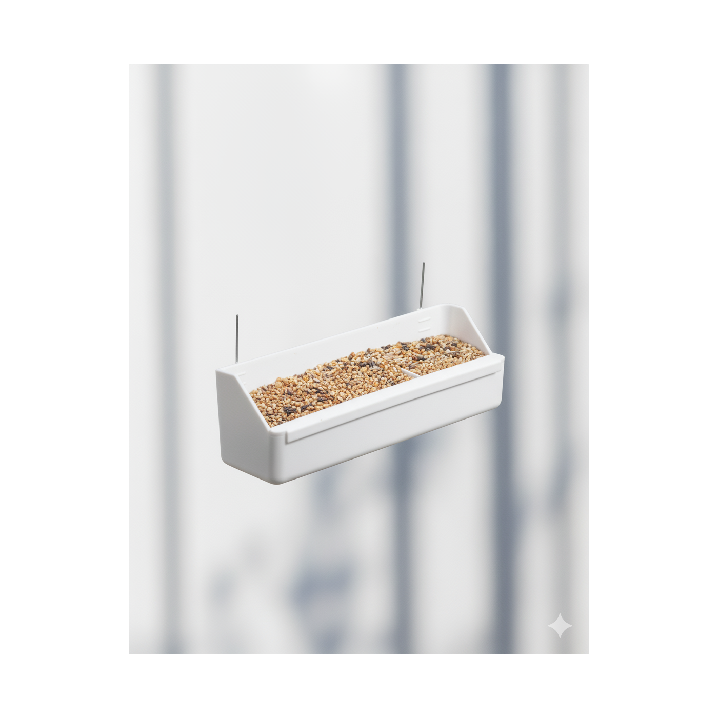 Con unas medidas de 20 x 6 x 4 cm, este modelo se adapta a una amplia variedad de jaulas y sistemas de cría, ofreciendo una excelente capacidad de almacenamiento de alimento sin ocupar demasiado espacio. Su rejilla superior extraíble evita el desperdicio y mantiene el alimento limpio, evitando que las aves se suban o ensucien el contenido.