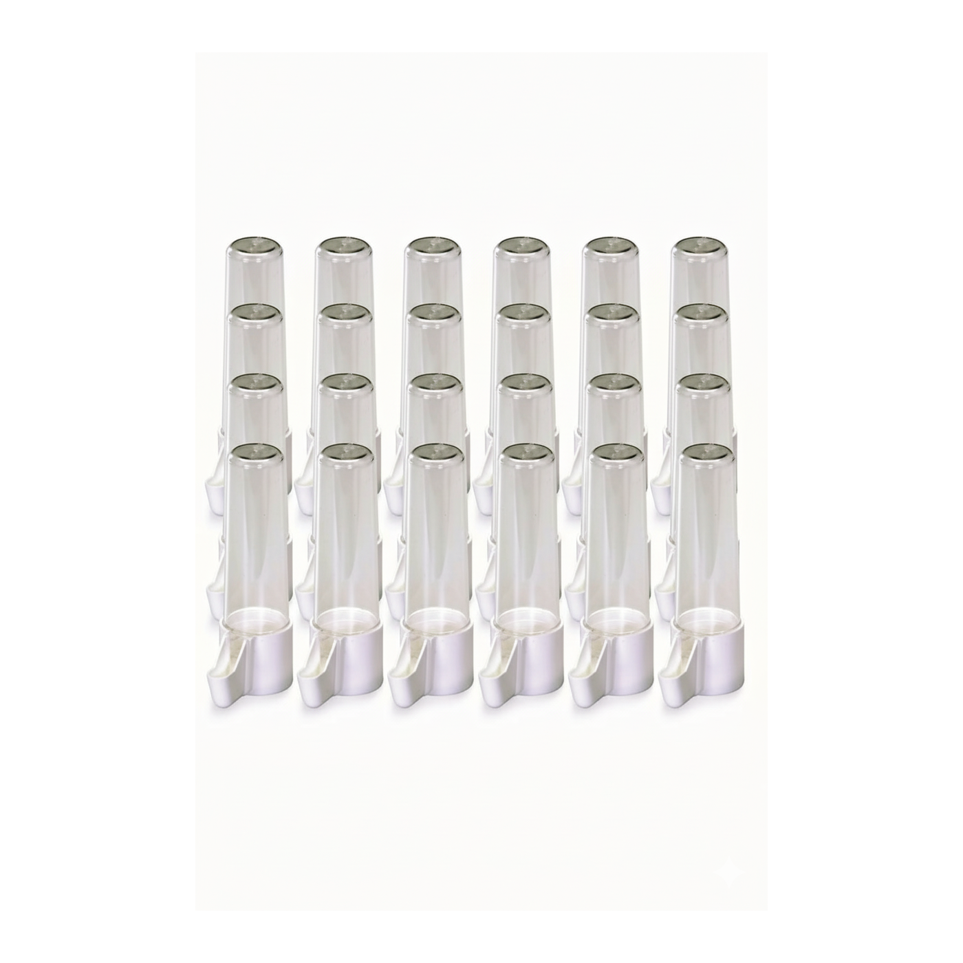 La base del bebedero es de un elegante color blanco brillante, que no solo aporta un toque estético, sino que también facilita la limpieza. Su diseño ergonómico asegura que tus aves puedan beber cómodamente. La facilidad de instalación y retirada lo convierte en un accesorio perfecto para el uso diario, tanto en jaulas de interior como en aviarios al aire libre.