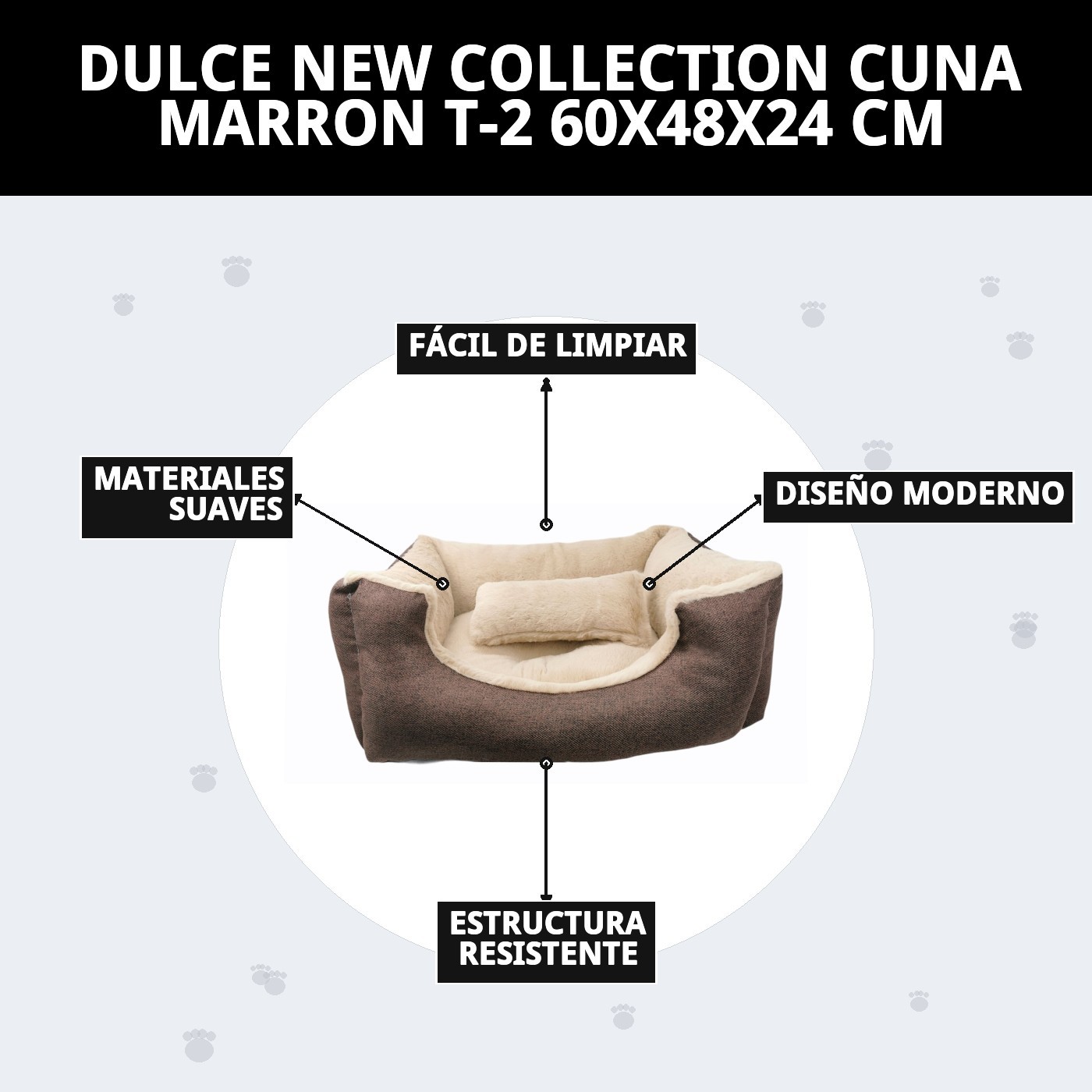 La cuna Dulce New Collection marrón T-2 60X48X24 CM es el refugio perfecto para tus mascotas. Fabricada en España con materiales de primera calidad, esta cuna es desenfundable y lavable, garantizando comodidad y limpieza. Su diseño actual se adapta a la decoración de tu hogar, brindando un espacio acogedor para perros y gatos.