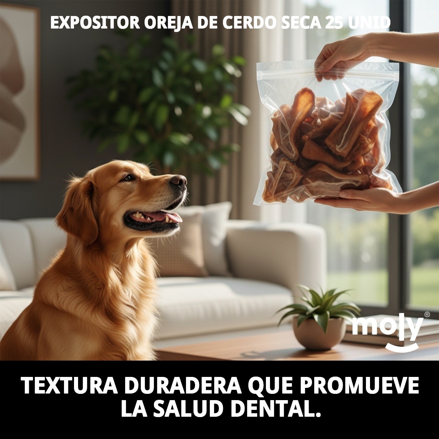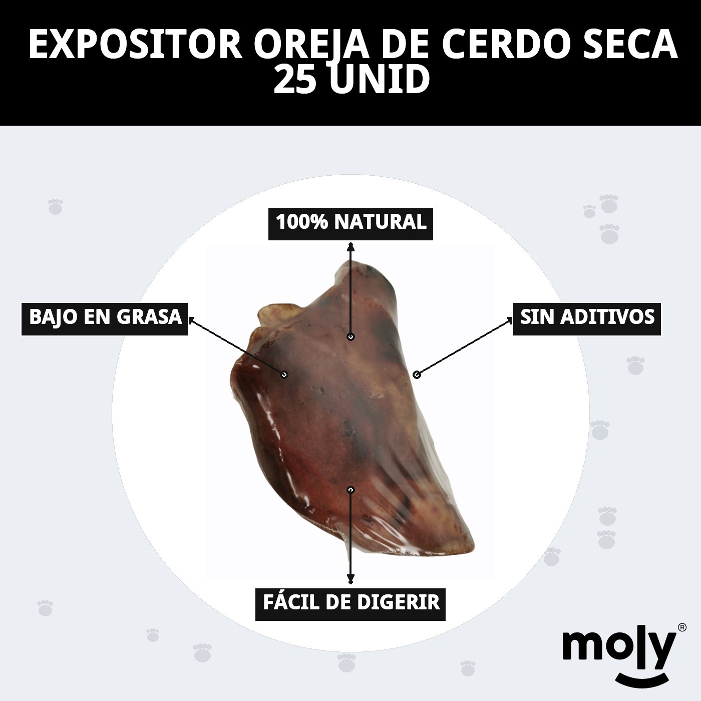 Expositor Moly con 30 Orejas de Cerdo | Snack Natural y Crujiente para Perros
