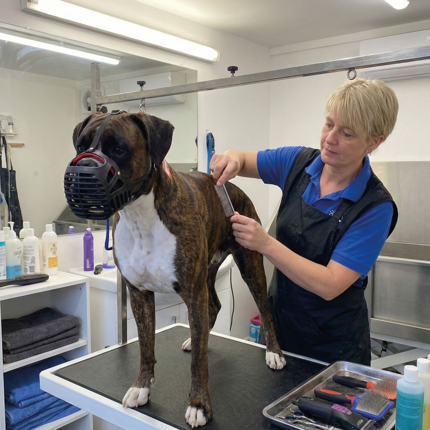 Propietarios de Bóxer que buscan un bozal cómodo, seguro y perfectamente adaptado a la raza, así como tiendas de mascotas que desean ofrecer productos ergonómicos y de alta calidad.