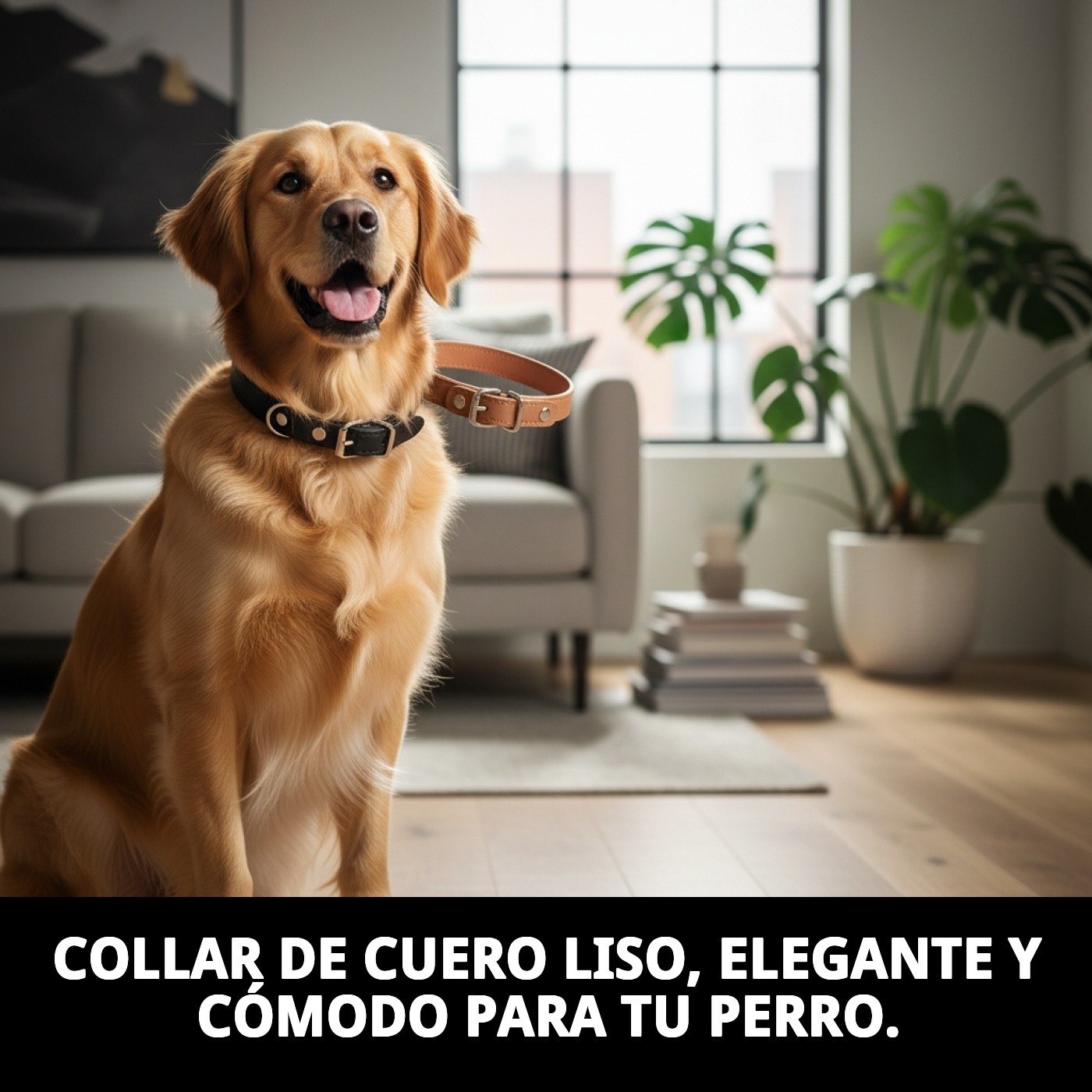 - Estilo: Elige un diseño que refleje la personalidad de tu mascota. El collar cuero liso es una opción versátil que combina con todo.