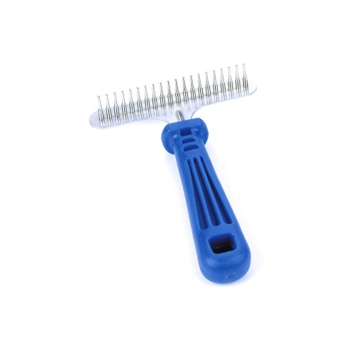 El rastrillo metálico de Moly es esencial para el cuidado de tu mascota. Su diseño ergonómico facilita el cepillado, eliminando el pelo muerto y evitando enredos. Ideal para mantener el pelaje de tu animal saludable y brillante, este producto es imprescindible para cualquier amante de los animales que busque calidad en peluquería animal.