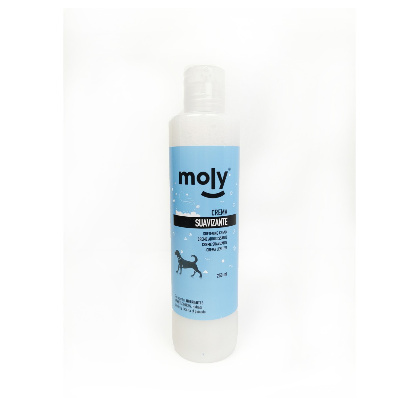 La crema suavizante para perros y gatos de Moly es ideal para pelajes largos. Su fórmula con colágeno y proteínas brinda suavidad y elasticidad, facilitando el cepillado y eliminando nudos difíciles. Además, ayuda a restaurar el equilibrio de la piel. ¡Una opción segura y efectiva para el cuidado de tu mascota!