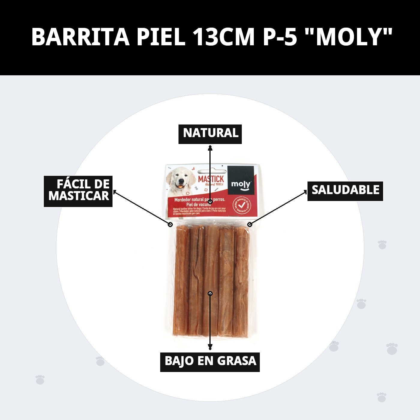 Si quieres que tu perro se divierta mientras cuida su salud dental, las barritas piel 13cm P-5 "Moly" son una opción que no puedes pasar por alto. Con su calidad y sabor, seguro que se convertirán en uno de los snacks favoritos de tu peludo. ¡No te quedes sin probarlas!