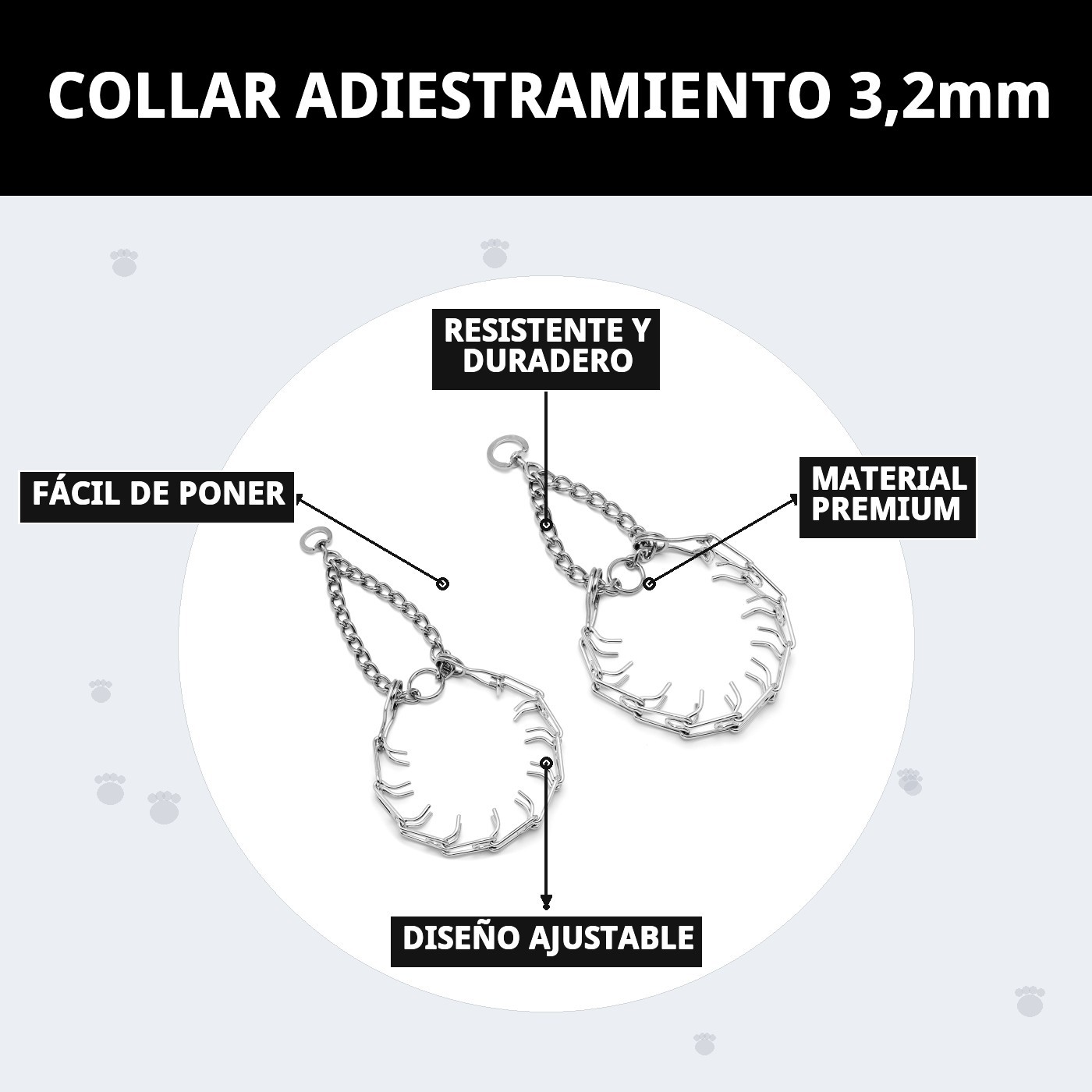 El collar adiestramiento 3,2mm es un accesorio diseñado específicamente para facilitar el aprendizaje y la obediencia en perros. Fabricado con materiales metálicos de alta calidad, este collar es resistente y duradero, ideal para los perros más activos. Su diseño permite un ajuste cómodo, asegurando que tu peludo amigo se sienta a gusto mientras aprende a comportarse.