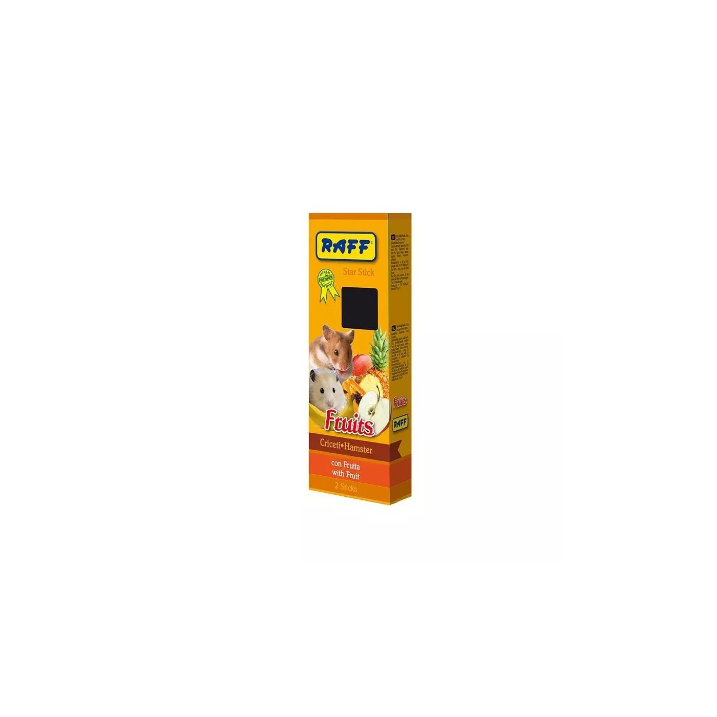 Raff Star Stick Fruit Hamster 112 g es un snack complementario de alta calidad, especialmente formulado para hámsters de todas las variedades. Elaborado con una mezcla selecta de frutas naturales como manzana, plátano y piña, estos sticks ofrecen una fuente adicional de energía, vitaminas y fibra, además de proporcionar entretenimiento y estimular el comportamiento natural de roer del hámster.